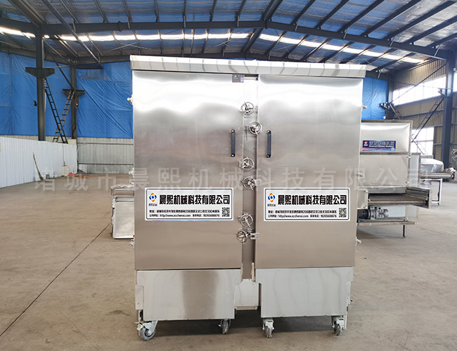 紅薯干加工設備之一,該機設計為1門和2門,也可以根據(jù)客戶需求定制單獨電加熱,單獨蒸汽加熱,也可以設計跟我們的烘干房的盤子和車子都一樣的尺寸,節(jié)省操作人員的時間,紅薯從蒸箱里面出來后,可以直接將車子拉到紅薯干烘干房里面進行烘干,省卻了工人從蒸箱盤子里面倒到烘干房烘盤里面,從而提高了工作效率。